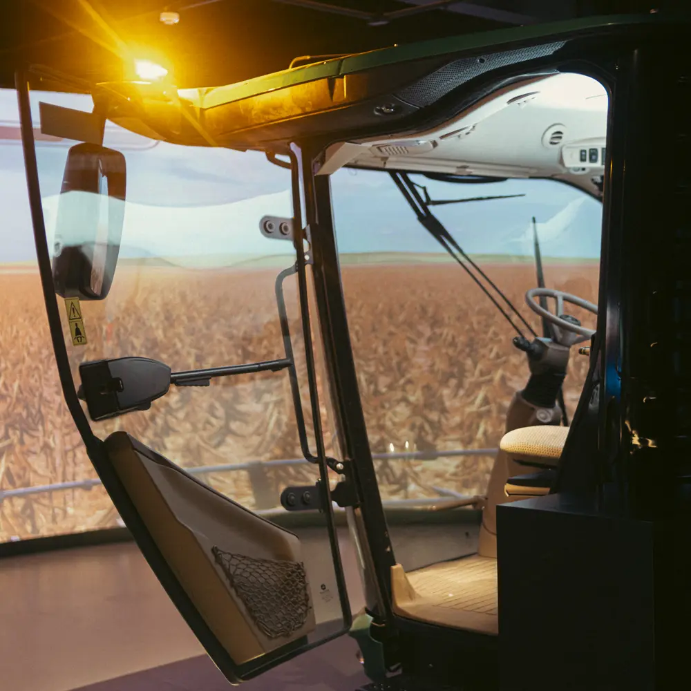 Com uma cabine genuína da colheitadeira John Deere linha S, o simulador proporciona uma experiência imersiva pela agricultura contemporânea. Desenvolvido para demonstrar o alto nível de tecnologia embarcada nas máquinas agrícolas modernas, ele simula com precisão os comandos e o ambiente operacional real. Representa a inovação na agricultura, aproximando o público da realidade do campo e valorizando o papel do produtor rural no desenvolvimento do Brasil.