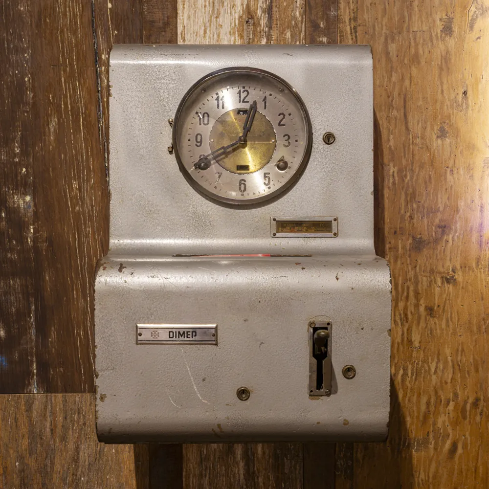 O antigo relógio ponto da SLC é um símbolo de compromisso e disciplina. O equipamento, de registro manual, marcava a entrada e saída dos funcionários, organizando as jornadas e os turnos. Não só para estes registros, ela representa o avanço e crescimento do trabalho industrial e o respeito ao tempo coletivo. Cada batida do carimbo ecoa o trabalho de homens e mulheres que, com empenho e dedicação diária, ajudaram a construir a história da empresa.