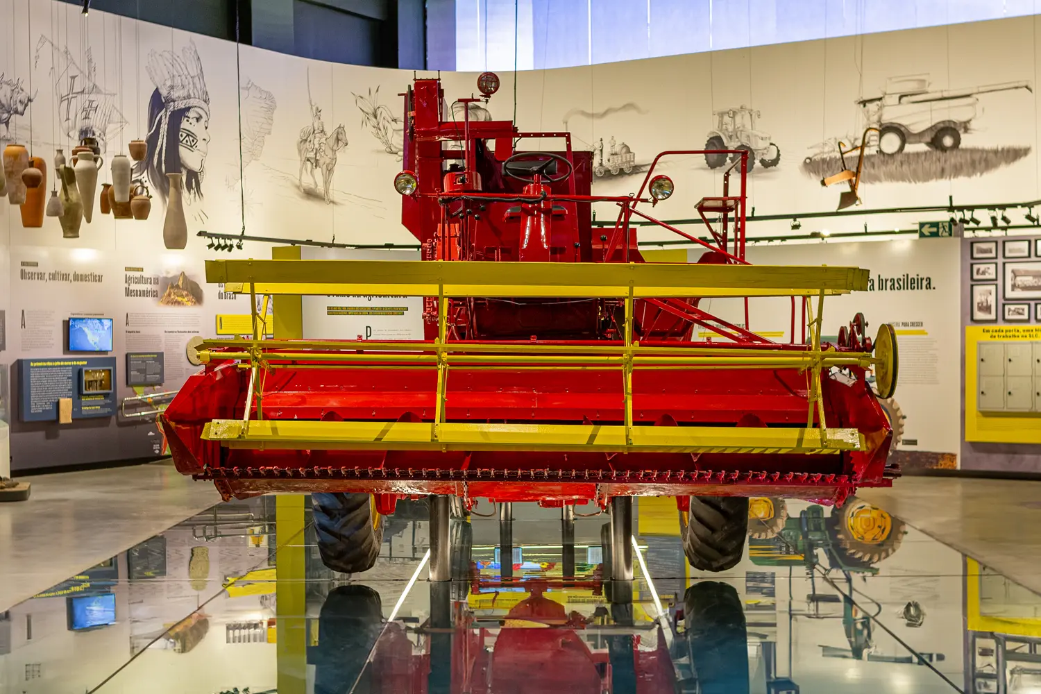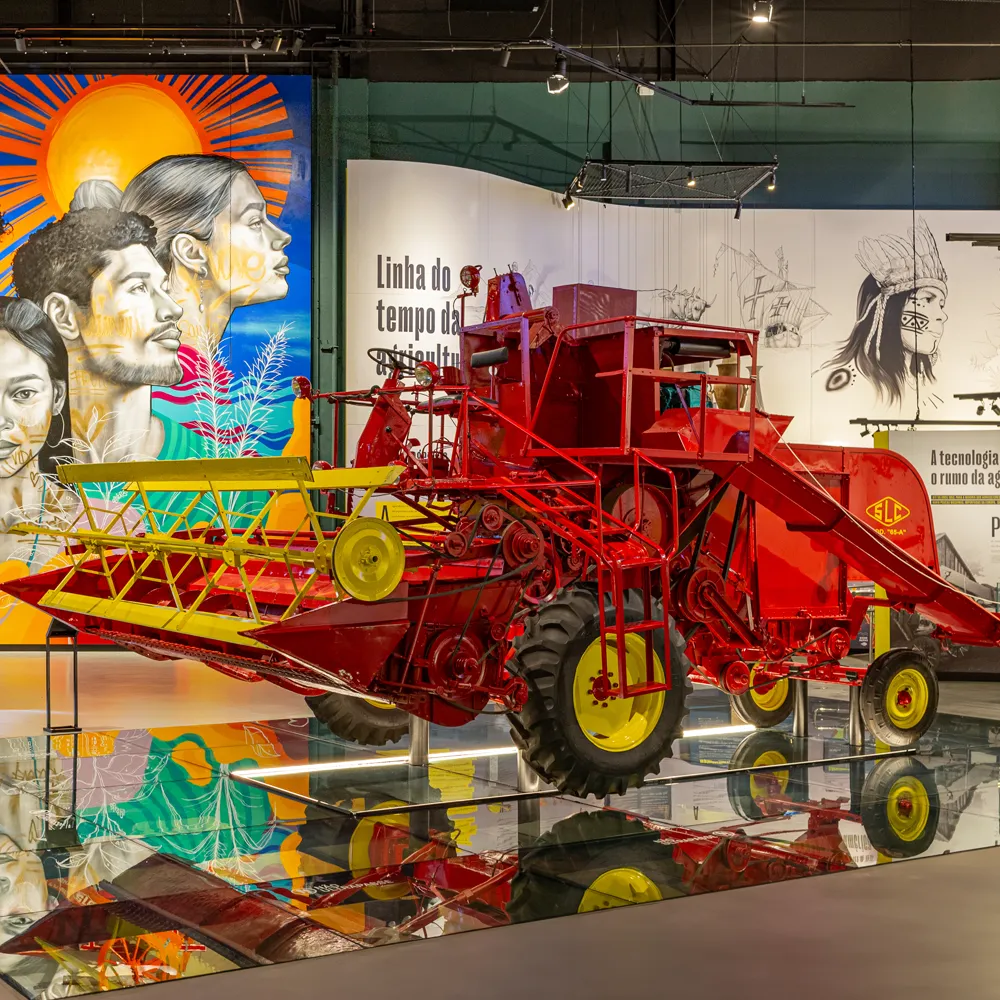 Em 1965, a SLC, de Horizontina (RS), lançou a primeira colheitadeira automotriz produzida no Brasil, inspirada no modelo 55 da John Deere. Um marco histórico para a indústria agrícola nacional, provou sua excelência ao colher três vezes mais que as importadas, impulsionando a empresa norte americana e buscar novos horizontes um outro hemisferio. O exemplar Nº 1, exposto no MEA, simboliza a ousadia técnica do Noroeste gaúcho e desperta orgulho por representar a autonomia, o pioneirismo e a força de um povo que acreditou na sua própria capacidade de inovar.