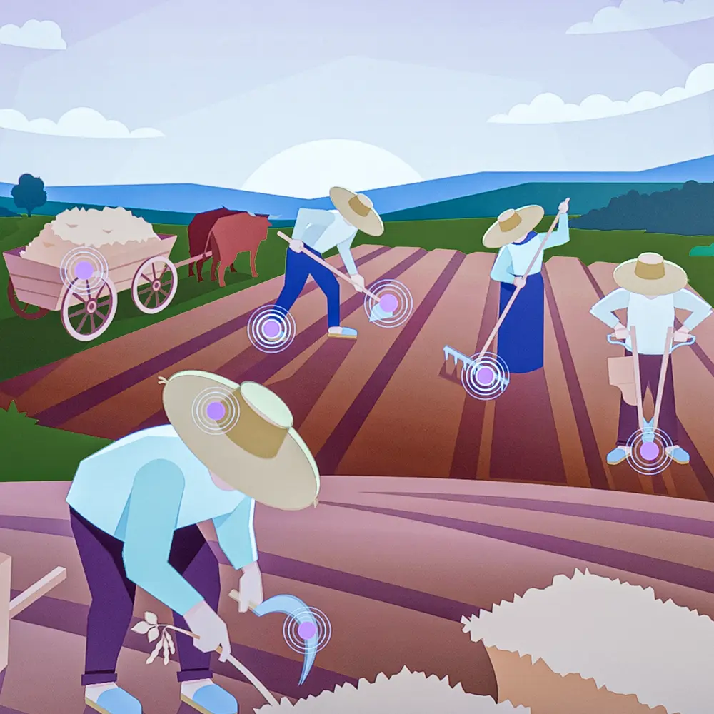 Esta tela interativa resgata de forma lúdica, imersiva e educativa, a jornada do cultivo manual nas lavouras utilizando ferramentas de outras épocas.