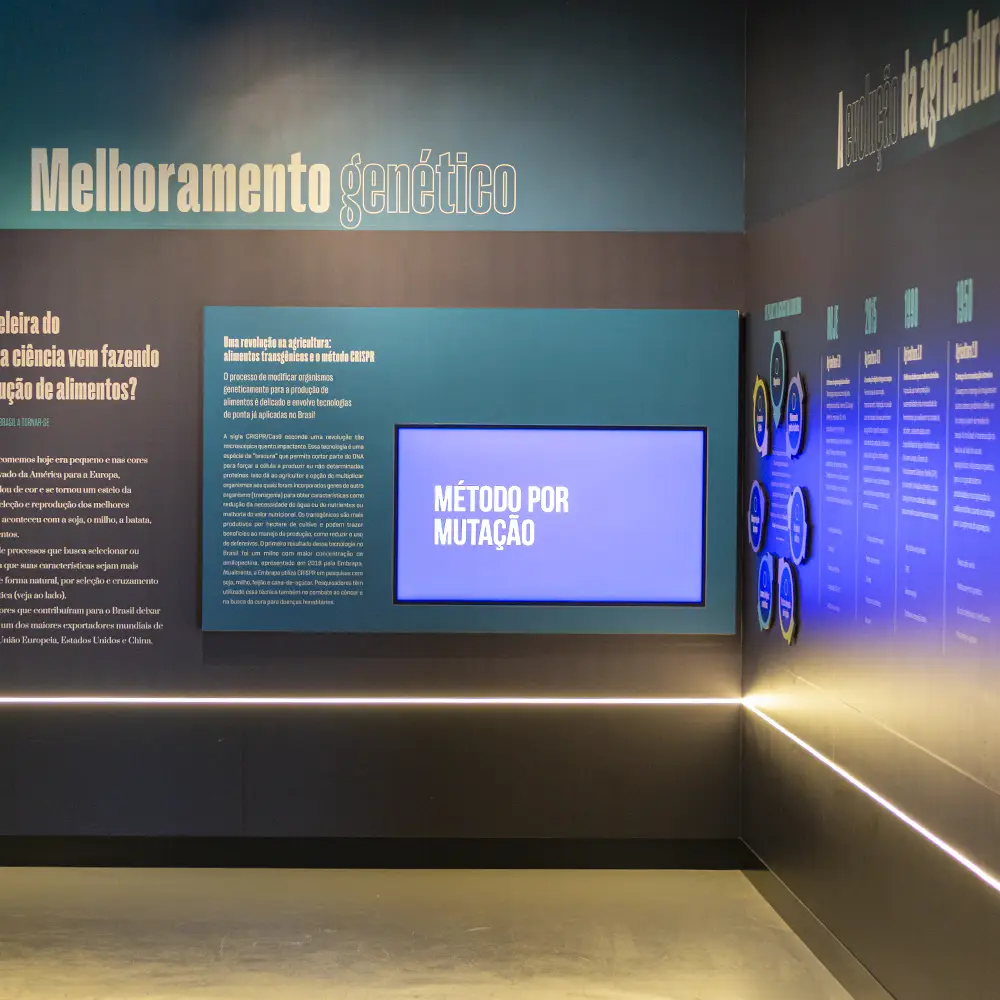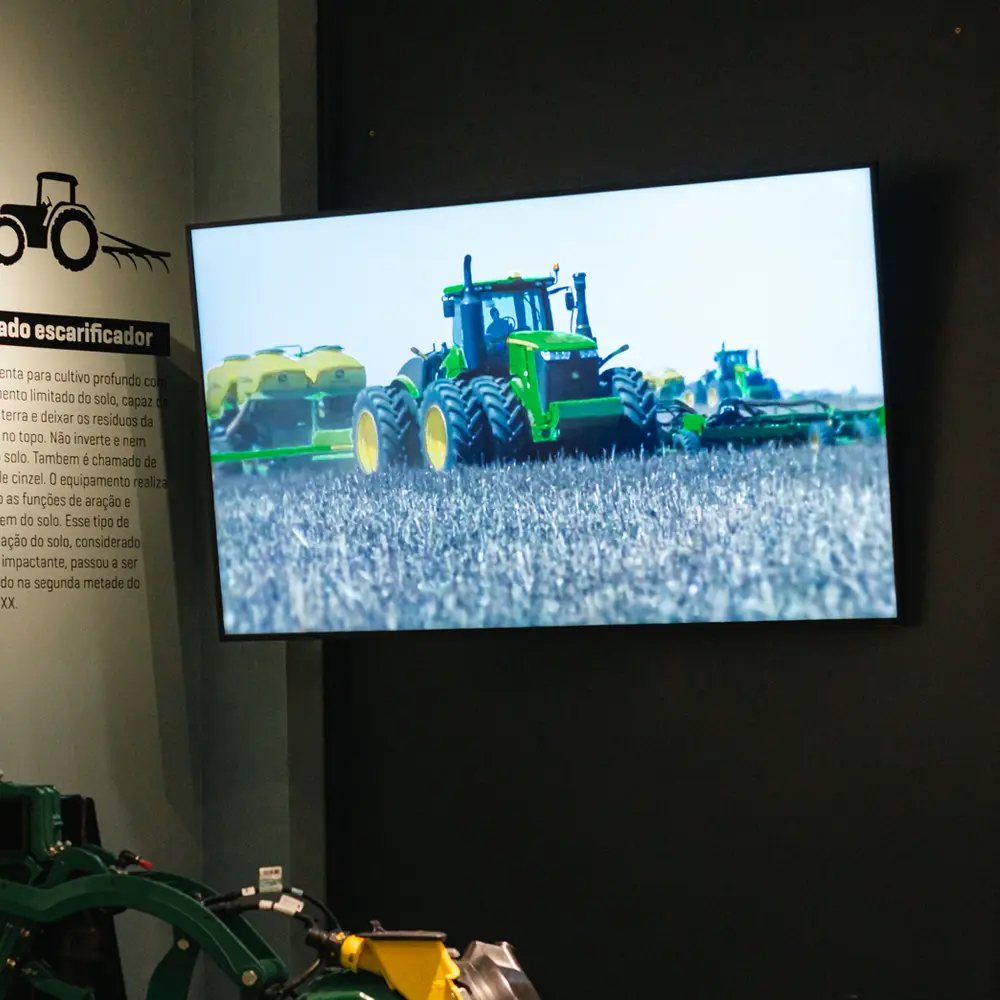 O holograma "Mais um dia de trabalho na fazenda" é uma instalação que resume, de forma imersiva, a trajetória da agricultura — da força manual à mecanização e à era da tecnologia. Através da projeção em 3D, o público vivencia o cotidiano rural em suas diversas fases: desde o trabalho braçal, a introdução de máquinas, até o uso de sistemas inteligentes e conectividade no campo.