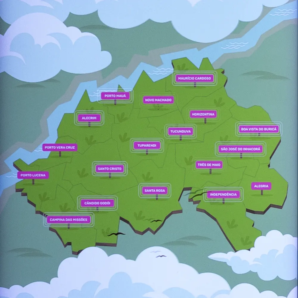 A instalação digital interativa, narra a formação histórica dos municípios que compõem a região noroeste do Rio Grande do sul. Por meio da linguagem acessível, lúdica e educativa, a projeção destaca os vínculos geográficos, culturais e econômicos que unem a região.