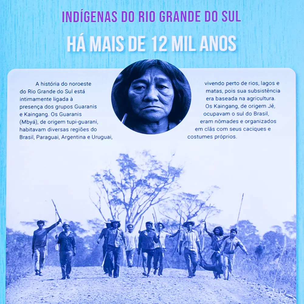 Esta projeção interativa apresenta uma narrativa histórica que ultrapassa os limites da agricultura, abrangendo períodos que datam de mais de 12 mil anos até 1937. Por meio de recursos visuais, textuais e imersivos, a obra evidencia tratados e acordos realizados entre os primeiros povos que habitaram os territórios, revelando aspectos culturais, sociais e políticos fundamentais para compreender a formação da região Noroeste do Rio Grande do Sul. Essa linha do tempo interativa proporciona uma imersão no passado ancestral, valorizando as raízes históricas e o convívio entre diferentes povos que antecederam o desenvolvimento agrícola.