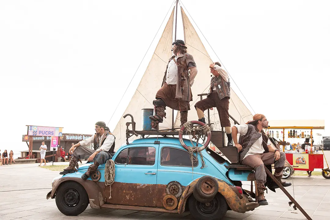 A apresentação gira em torno de um ferro-velho e acompanha a história do personagem Ismael, que transforma seu Fusca em uma embarcação imaginária, conduzindo o público por memórias, delírios e reflexões. Com elementos visuais como bonecos de tubarões e sereias, o espetáculo atrai espectadores de todas as idades.